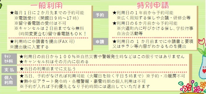 (椅子等備品が必要な場合は特別許可申請書もご提出ください)